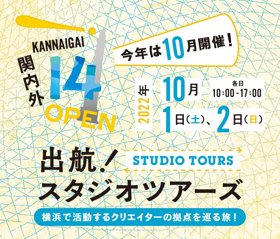 関内外OPEN!は、横浜・関内外エリアを中心に活動するクリエイターのネットワークから生まれる、横浜らしい活動を発信するイベント。14回目の開催となる今回は《出航!スタジオツアーズ》をテーマに、横浜・関内外エリアのキーマンとなるクリエイターがコンダクターとなり、アトリエや拠点などを紹介する“スタジオツアー”を開催する。