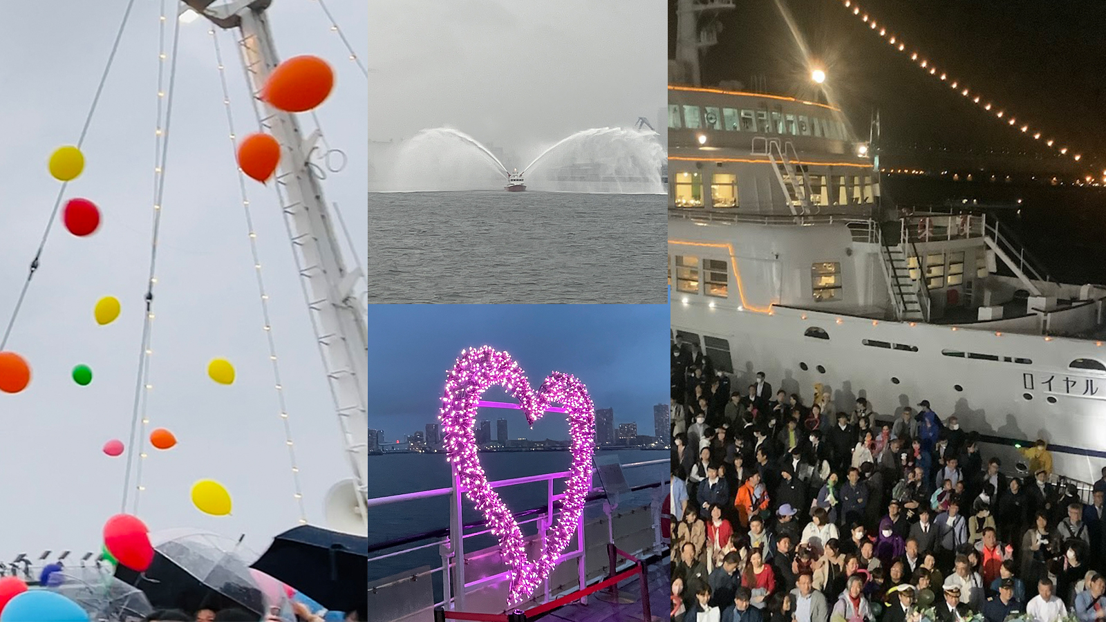 司会はTVKアナウンサーの岡村帆奈美さん。「1960年の竣工から60年、現在のロイヤルウイングとして22年。このクルーズが、ロイヤルウイング最後のクルーズ」と説明。