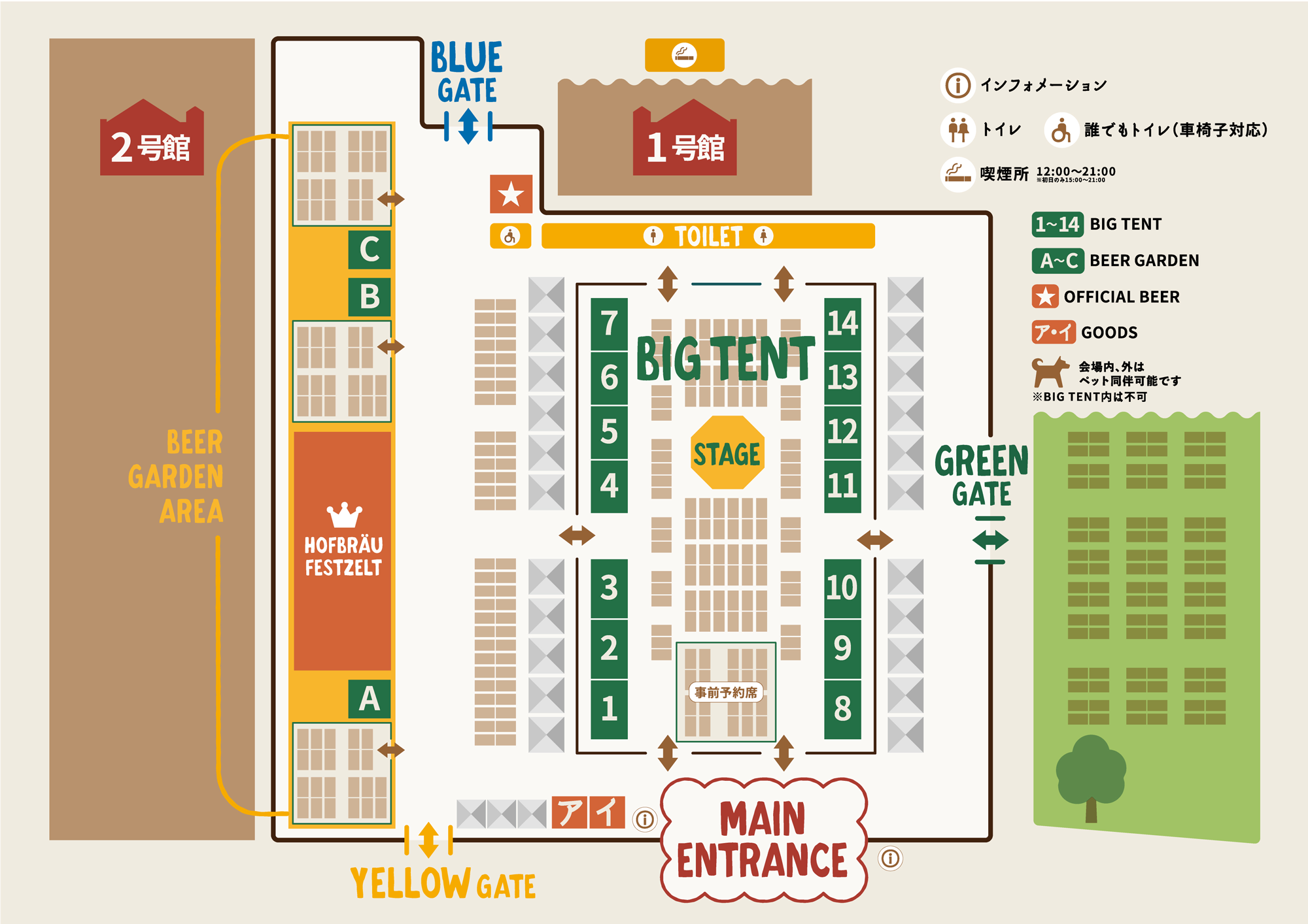 MAIN ENTRANVCEから入り、BLUE GATEへ向かって、ゲートを出る手前の★マークがそのブース