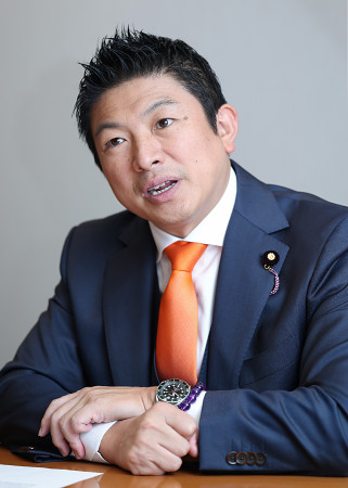 参政党の神谷宗幣代表は7日、時事通信のインタビューに応じ、自民、公明両党の連立政権に参加する可能性について「今の力では利用されて終わるだけだ。だから入らない」と明確に否定した=国会内 【時事通信社】