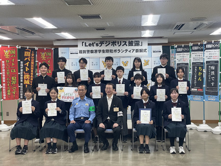 警視庁蔵前署は16日、管内の中高生を学生防犯ボランティアに委嘱し、防犯アプリ「デジポリス」をダウンロードできるキーホルダーを紹介。代表の中学生は「身近な人が闇バイトをしないように助けたい」と話した。 【時事通信社】