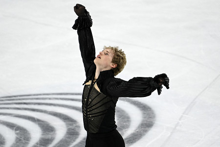 フィギュアスケートのグランプリシリーズ第1戦、フランス大会は19日、フランスのアンジェで男子フリーが行われ、SP首位のイリア・マリニン(米国)がフリーでも1位となり、合計321.00点で優勝した。 【AFP時事】