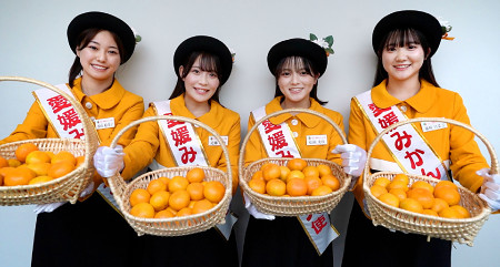 JAにしうわの早生(わせ)みかんの初売りが始まった6日、「愛媛みかん大使」4人が東京都内の時事通信社を訪問しPRを行った。今年は例年と比べて天候が良く、糖と酸味のバランスがとれているという。 【時事通信社】