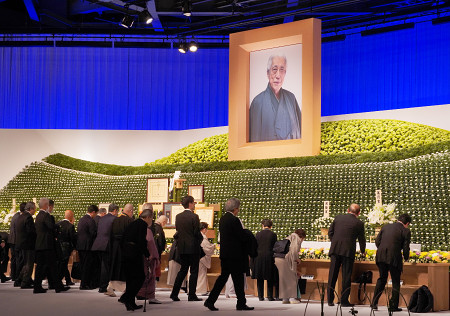 茶道裏千家前家元で、8月に102歳で亡くなった千玄室さんのお別れ会が27日、京都市左京区の国立京都国際会館で開かれた。親族や関係者のほか、都倉俊一文化庁長官ら各界の著名人が訪れ、故人をしのんだ。 【時事通信社】
