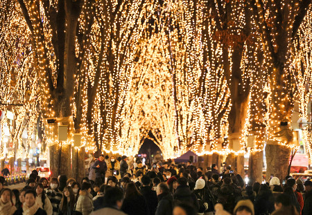 仙台市中心部のケヤキ並木をライトアップする「SENDAI光のページェント」が5日、開幕した。定禅寺通りでは127本のケヤキに取り付けられた約48万個の発光ダイオード(LED)電球が午後6時一斉に点灯 【時事通信社】