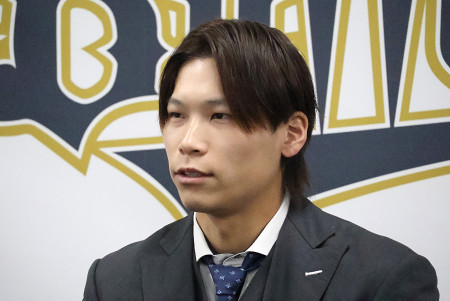 初のベストナインに輝いたオリックスの中川は、3000万円増の1億円で更改した。「好不調の波をどれだけ少なくするか。チームを勝たせることを意識したい」と語った。(金額は推定)=12日、大阪市 【時事通信社】