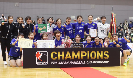 ハンドボールの日本選手権は21日、広島市のコジマホールディングス中区スポーツセンターで男女の決勝が行われ、女子はソニー鹿児島が石川を26―23で退け、7年ぶり3度目の優勝。 【時事通信社】