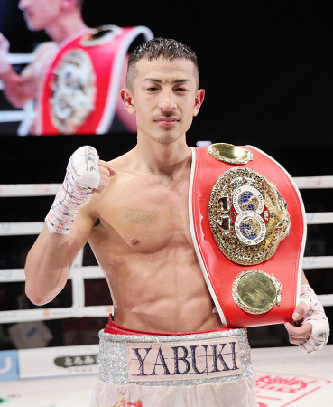IBFフライ級タイトルマッチは27日、愛知県国際展示場で行われ、王者の矢吹正道(写真)が、挑戦者で元IBFライトフライ級王者のフェリックス・アルバラードを12回1分59秒KOで下し、初防衛に成功した。 【時事通信社】