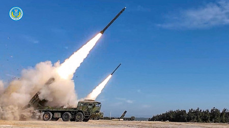 中国軍は30日、台湾を包囲した軍事演習を続けた。写真は中国軍が台湾南部の海域に向けて行った実弾射撃訓練=撮影場所不明(中国軍東部戦区が同日公開した映像より) 【ロイター時事】