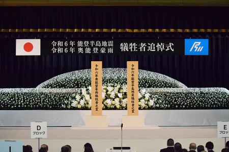 能登半島地震は1日、発生から2年を迎えた。死者は災害関連死を含め698人に上る。被害の爪痕が残る石川県輪島市では同日、雪が断続的に降る中、犠牲者追悼式が開かれた。 【時事通信社】