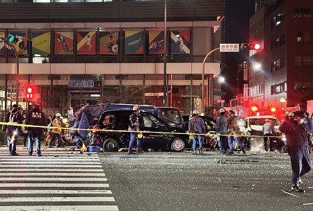22日午後6時半ごろ、東京都港区赤坂の特許庁前の交差点で6台が絡む事故があり、男性1人が死亡、男女8人が重軽傷を負った。内閣府の公用車が赤信号を無視して交差点に突っ込んだとみられる。 【時事通信社】
