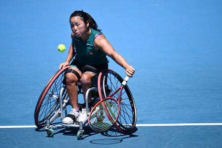 テニスの全豪オープン車いす部門は30日、メルボルン・パークで行われ、シングルス準決勝で女子の上地結衣は李暁輝(中国)に6―3、2―6、6―7で競り負け、2連覇を逃した。 【EPA時事】