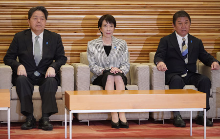 茂木敏充外相(右)は10日の記者会見で、13~16日の日程でドイツ・ミュンヘンを訪れ、各国の外相や国防相らが集まるミュンヘン安全保障会議に出席すると発表した=首相官邸 【時事通信社】