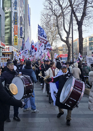 韓国のソウル中央地裁は19日、2024年12月に「非常戒厳」を宣言し、内乱を首謀した罪に問われた前大統領の尹錫悦被告に対し、有罪と認め無期懲役の判決を言い渡した。写真は地裁周辺に集まった尹氏の支持者ら 【時事通信社】