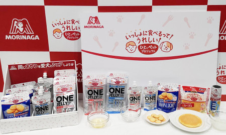 森永製菓は19日、愛犬と飼い主が一緒に食べることのできるおやつ7品を来月3日に発売すると発表した=東京都港区 【時事通信社】
