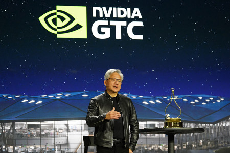 米半導体大手エヌビディアのフアン最高経営責任者(CEO)は17日、同社の前世代型先端AI(人工知能)半導体「H200」の対中輸出に向け、「生産を再開している」と明らかにした=カリフォルニア州サンノゼ 【時事通信社】