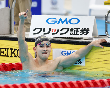 競泳の日本選手権最終日は22日、東京アクアティクスセンターで今秋の愛知・名古屋アジア大会などの代表選考会を兼ねて行われ、男子1500メートル自由形は田渕海斗が日本記録を更新する14分45秒57で制した 【時事通信社】
