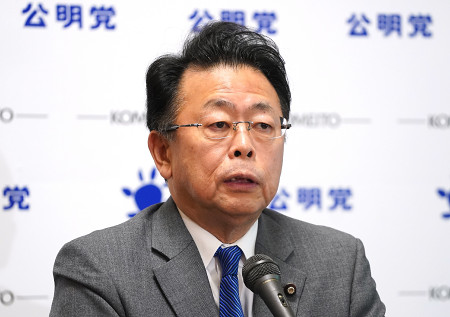 公明党の西田実仁幹事長は27日の記者会見で、政府が同日閣議決定した暫定予算案に「賛成の方向」だと明らかにした=国会内 【時事通信社】