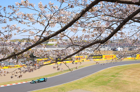 自動車のF1シリーズ第3戦、日本グランプリ(GP)が27日、三重・鈴鹿サーキットで開幕。観客席の桜の開花が進む中、2回のフリー走行が行われた。 【時事通信社】