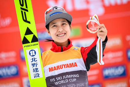 ノルディックスキーのW杯ジャンプ女子は28日、スロベニアのプラニツァでフライングヒルによる個人最終戦が行われ、丸山希は合計361.7点で3位に入った。丸山は今季の個人総合順位で自己最高の2位。 【AFP時事】