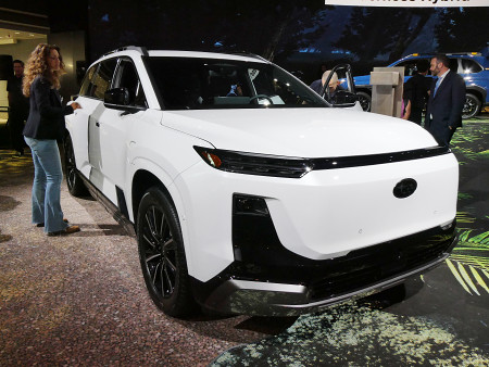 全米有数の自動車見本市、ニューヨーク国際自動車ショーが1日、開幕した。写真はSUBARU(スバル)がニューヨーク国際自動車ショーで初披露した新型電気自動車(EV)「ゲットアウェイ」=ニューヨーク 【時事通信社】