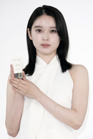 化粧品ブランド「ランコム」の新アンバサダーに就任した俳優の高石あかりさん。「選んでいただいた以上はブランドに似合うよう精一杯頑張りたい」と抱負を語った=7日、都内 【時事通信フォト】
