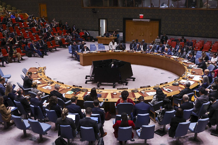 国連安全保障理事会は7日、イランが事実上封鎖するホルムズ海峡の安全確保を巡る決議案を否決した。中国とロシアが拒否権を行使した。 【EPA時事】