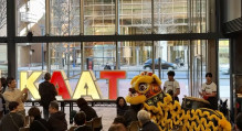 アトリウムには佐藤さんと、グラフィックデザイナーの近藤一弥さん、2021年からのアートディレクションを担当している吉岡秀典さんの3者が、KAATロゴをオマージュした作品を展示。