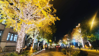 横浜スタジアムがある横浜公園から横浜港方面へと続く日本大通り(横浜市中区日本大通)で現在、「SDGsイルミネーション2025」が開催されている。