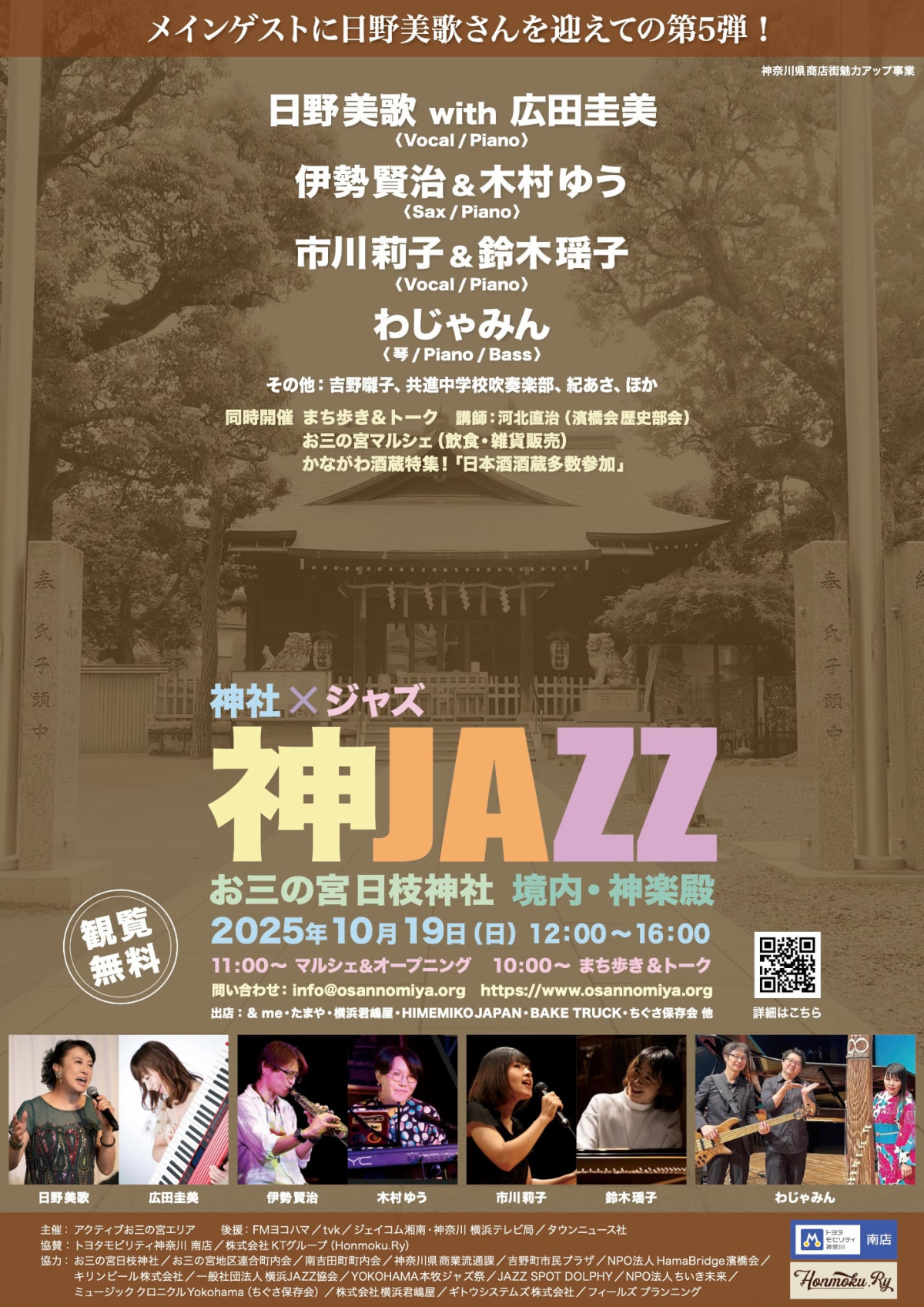 「お三の宮日枝神社」(横浜市南区山王町5)のでジャズ演奏などを楽しむイベント「神JAZZ」が10月19日に開催される。