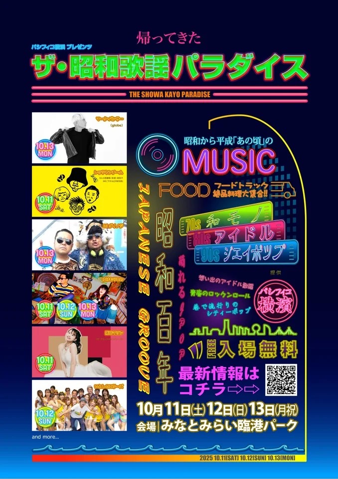横浜港に面する臨港パーク(横浜市西区みなとみらい1)で「ザ・昭和歌謡パラダイス」が、10月11日~13日に開催される。