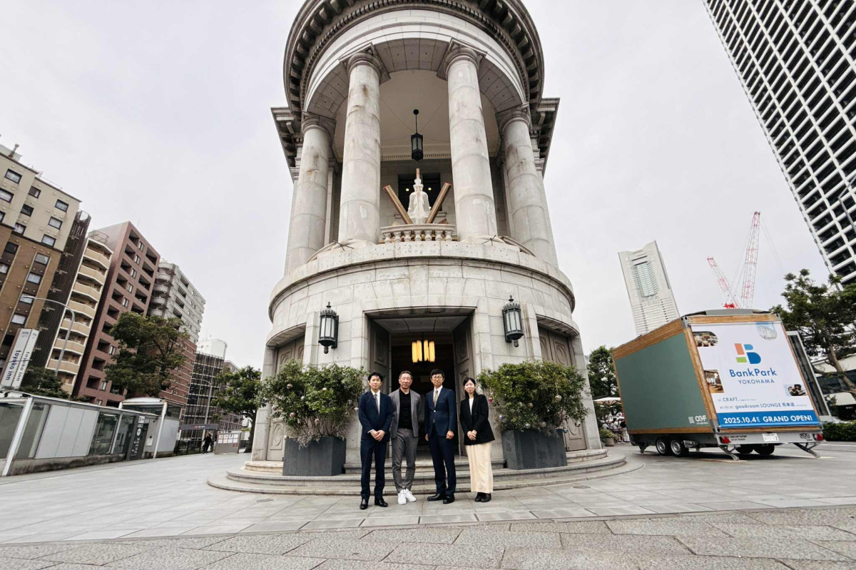 横浜市認定歴史的建造物の旧第一銀行横浜支店(横浜市中区本町6)を活用した文化交流拠点「BankPark YOKOHAMA」が10月4日、グランドオープンする。写真手前は、竹中工務店BankPark YOKOHAMA運営統括責任者・鍵野 壮宏さん、グッドルーム社長・小倉 弘之さん、CRAFFING JAPAN 社長・長江一彌さん、竹中工務店BankPark YOKOHAMA副連営統括責任者・竹内 友菜さん。