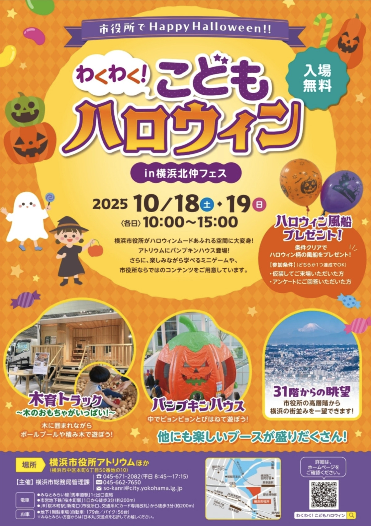 横浜市役所(横浜市中区本町6)で10月18日と19日の2日間、「わくわく!こどもハロウィン in横浜北仲フェス~市役所で Happy Halloween~」が開催される。