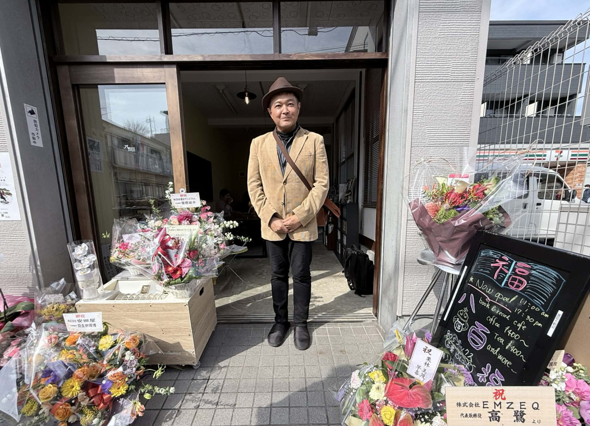 「book & record cafe 八百福×古書80'sブックス×80'sおもちゃ資料館」(横浜市中区大和町1)が2月14日にオープンした。オープン当日の14日、開店を待ちわびる客たちが列を作る中、手回しオルガンによる祝いの演奏と共にシャッターが開き、栗林さんが出迎えた。