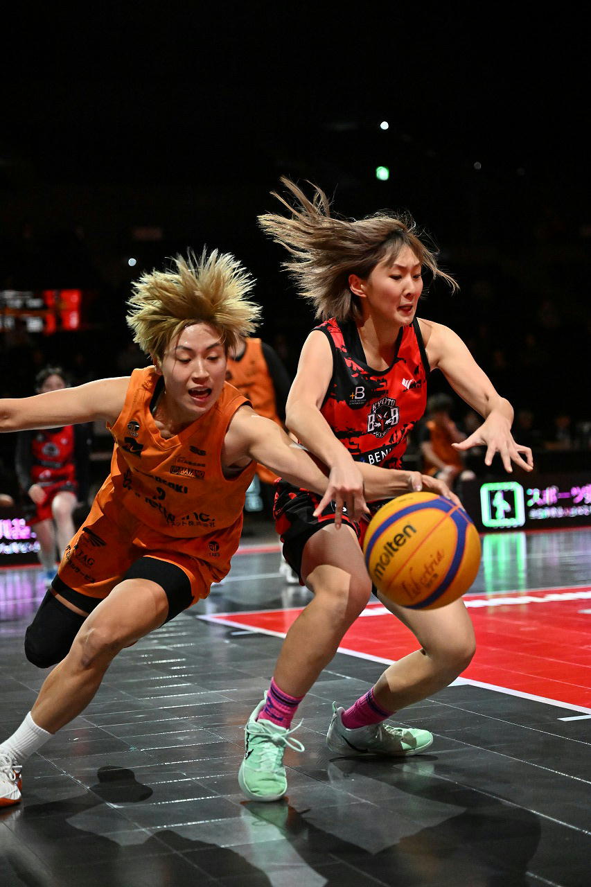 横浜BUNTAI(横浜市中区不老町2)で2月21日、3人制バスケットボール「3x3」の日本一を決定する「第11回3x3日本選手権大会」の決勝トーナメントが始まった。大会には、都道府県予選を勝ち抜き、さらに東・中・西日本の各エリア大会を突破した男女各16チームが出場。初日の女子カテゴリーでは、ノックアウト方式のトーナメントが行われ、準々決勝までを実施。激しい攻防の末、セミファイナルに進出するベスト4が出そろった。「FLOWLISH GUNMA(フローリッシュ グンマ)」(群馬)、「givers (ギバーズ)」(神奈川)、「UENOHARA SUNRISE(ウエノハラサンライズ)」(山梨)、「MAURICE LACROIX(モーリスラクロア)」(茨城)が、22日行われるセミファイナルとファイナルに進出した。撮影=斉藤豊(神奈川県バスケットボール協会)