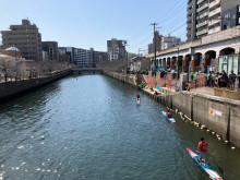 「第9回横浜国際SUPマラソン2026」が3月1日、横浜のみなとみらい地区の港湾とつながる大岡川、中村川、堀川を使用し、開催されている。