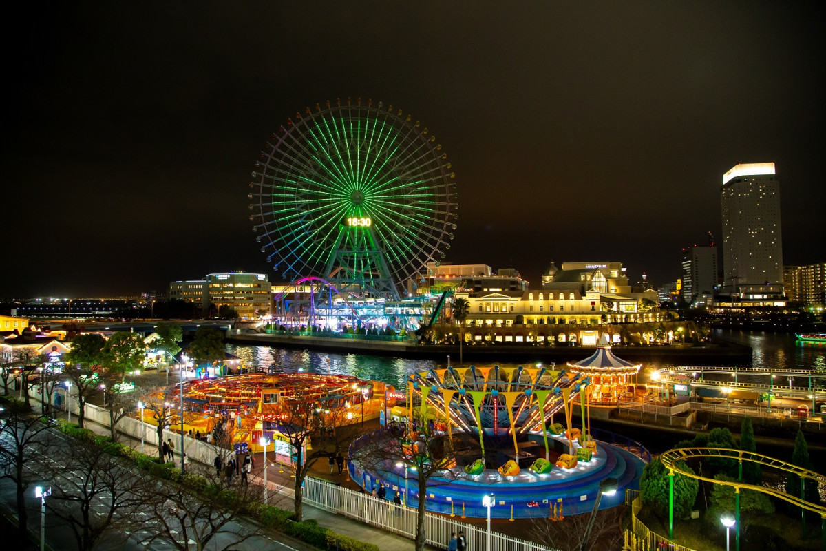 よこはまコスモワールド大観覧車「コスモクロック21」のグリーンライトアップ
