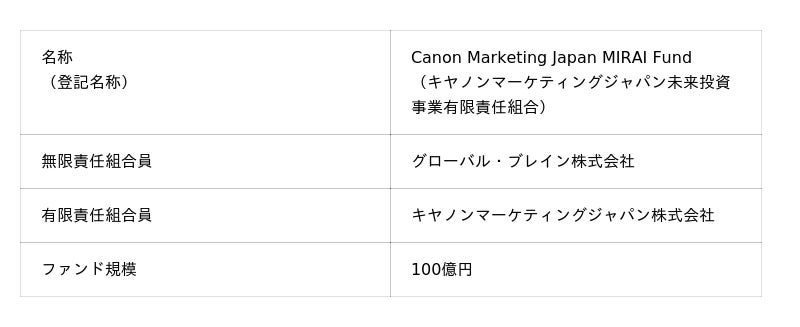 ■Canon Marketing Japan MIRAI Fund概要