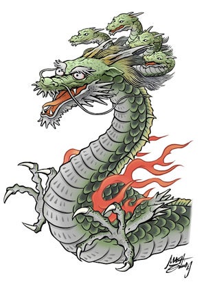 江島縁起にしか登場しない五頭龍を平成ゴジラシリーズ怪獣デザイナー西川伸司先生に特別に描き下していただきました。