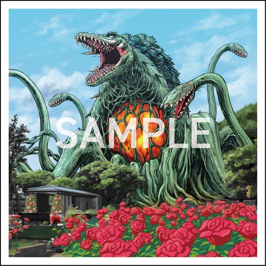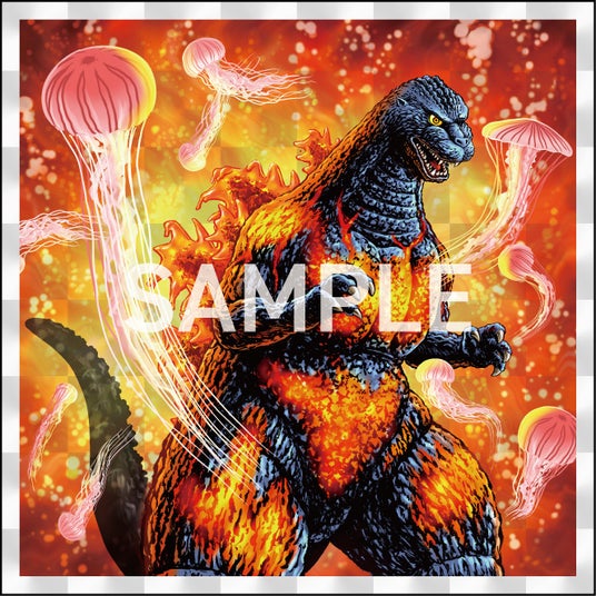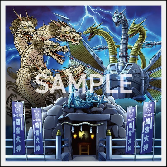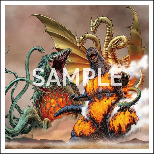 ゴジラ 新江ノ島水族館 重ね捺しアートメインビジュアル「ゴジラ&キングギドラ&ビオランテ/江の島」が、重ね捺しのアートポストカードに!