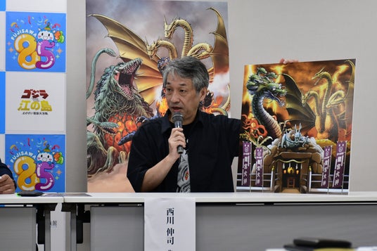 さらに、特典カードやシールに描かれる西川伸司先生描き下ろしのイラスト「絵巻五頭龍/キングギドラ」も初披露し、西川先生のイラストに対する想いもお話しいただきました。