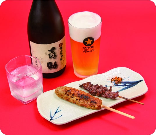 〈味の牛たん 喜助〉パーフェクト黒ラベル/喜助 芋焼酎/牛たん串の盛り合わせ
