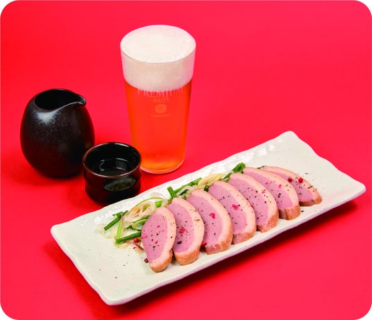 〈やきとり荒木山〉ザ・プレミアム・モルツ/本日の日本酒/紅茶鴨スモーク