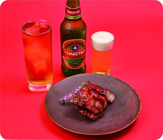 〈サワダ茶楼〉青島ビール小瓶/鉄観音ハイ/十勝豚の炙りチャーシュー