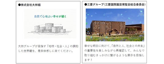 「Village出展」は、市民や企業など多様な参加者が、コンセプトを共有しながら「幸せを創る明日の風景」を創り上げる共創事業です。GREENの力と産業活動が融合した姿を示し、「幸せを創る明日の風景」を感じさせる屋外空間(庭園、広場等)や展示施設で、独自の体験やコンテンツを提供いただきます。今回は、8者の出展概要を初公開します。(以下、各出展者の出展イメージパース図及びメッセージ)