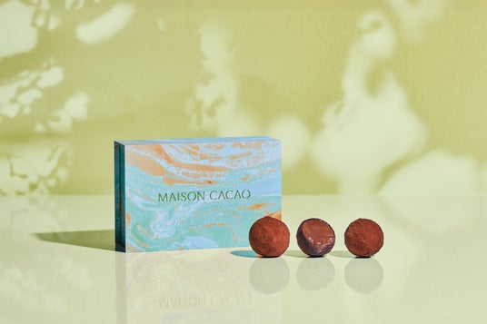 薄く全体を覆うチョコレートの殻が割れた瞬間、パリッと弾けて中から液状の生チョコレートが溢れ出します。驚きとともに広がる豊かな香りと口どけは、チョコレートでできた芸術と呼ぶにふさわしい食体験です。