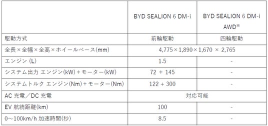 - 今回導入するモデルは、「BYD SEALION 6」のプラグイン・ハイブリッド(PHEV)モデル