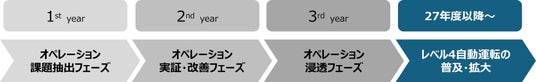 レベル4自動運転トラックの幹線輸送サービスに必要な運行オペレーションの課題を抽出するフェーズを経て、今後は、運行オペレーションの有効性を確認するための実証を重ねるとともに、そこで見つかった諸課題の改善活動に取り組んでいきます。