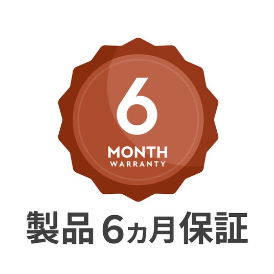 安心の6ヵ月保証本製品は6ヵ月保証がございます。ご使用中に万が一不具合などが発生した場合、保証期間内であれば無償で交換を保証いたします。お客様が安心して長くお使いいただける製品品質と併せて、サポート体制にも力を入れております。