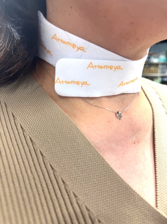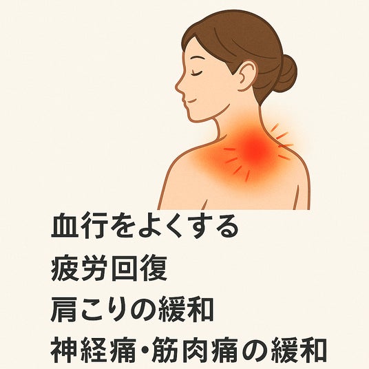 特に、首の付け根にある重要なツボ 「大椎(だいつい)」 は、東洋の養生法では “気血の通り道の要所” とされ、ここを温めることで、首・肩まわりのこわばり、冷えによる不調、ストレスによる筋緊張の緩和が期待されるとされます。